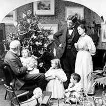 The picture shows a family in Victorian times celebrating Christmas with that new-fangled invention, the Christmas tree. We’ll explore the pagan roots of many of our Christmas traditions including the Christmas tree and door to door Christmas caroling which originated in a practice called wassailing that actually involved communal drinking!